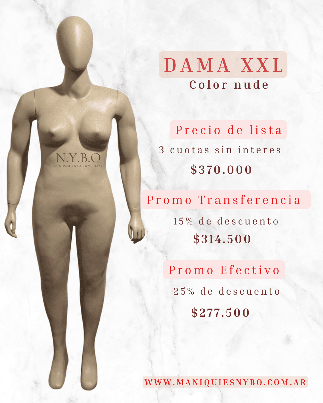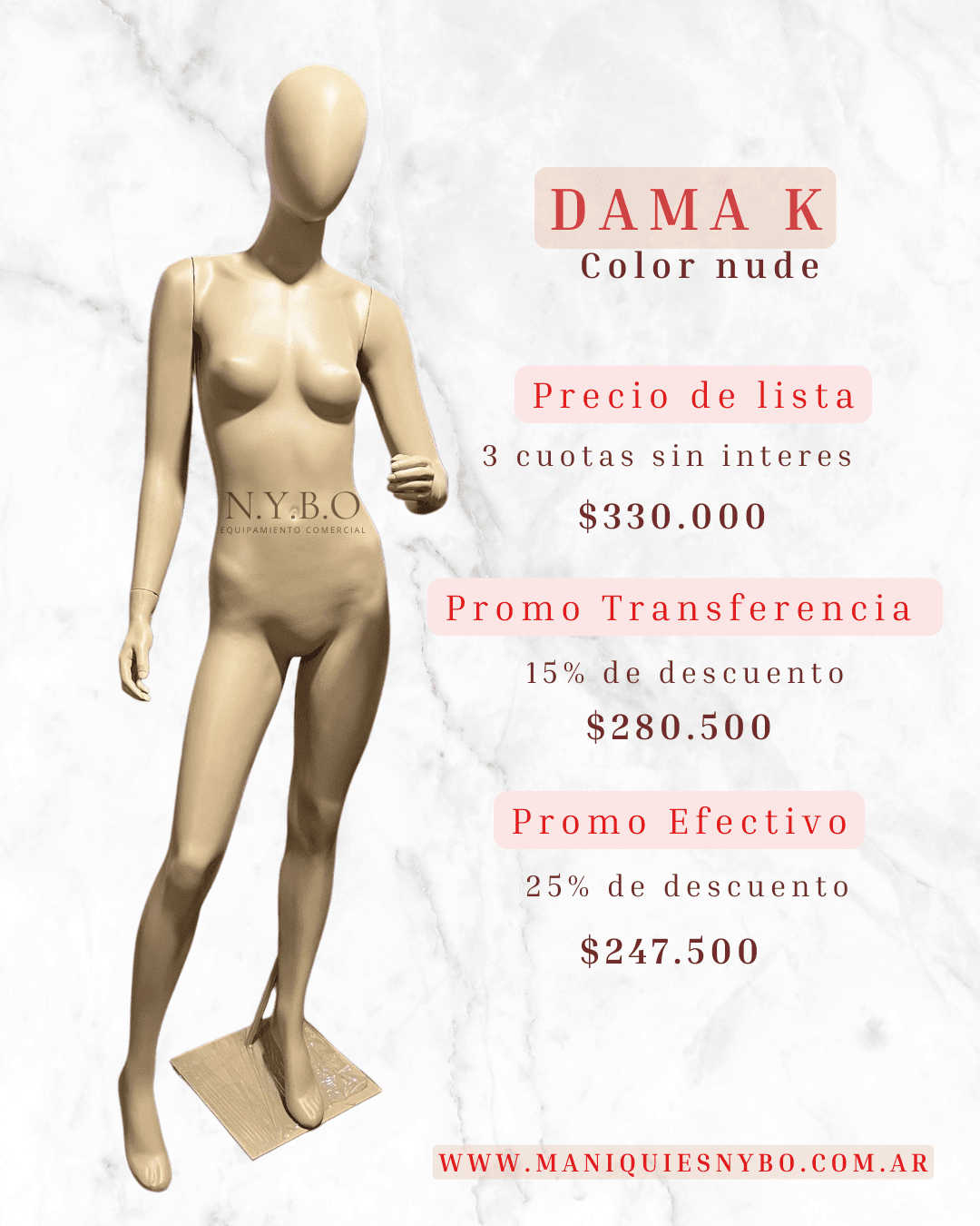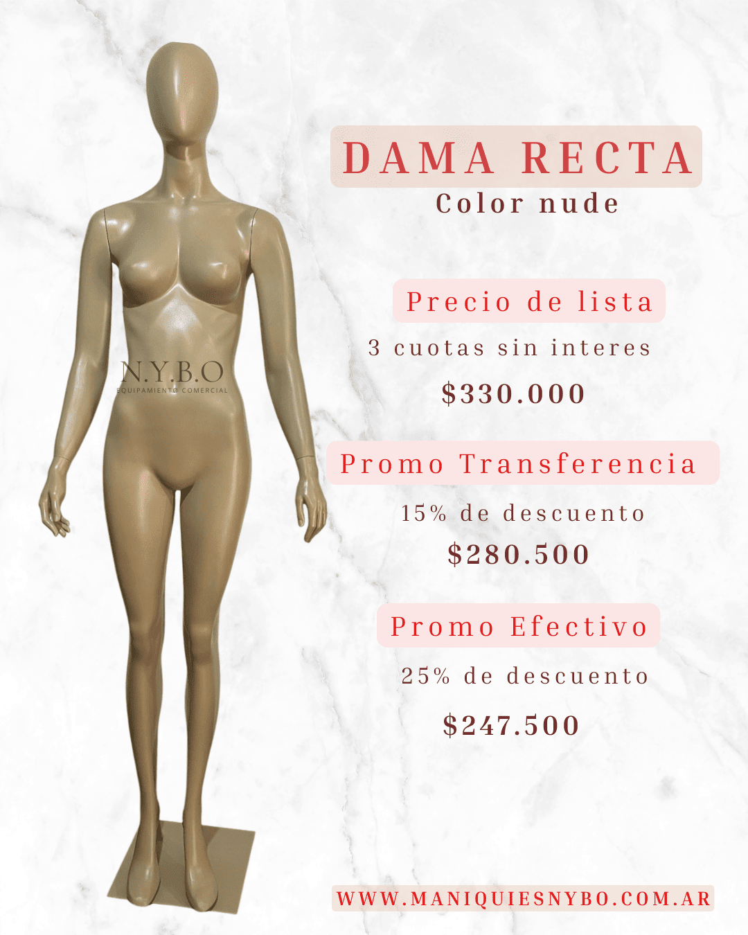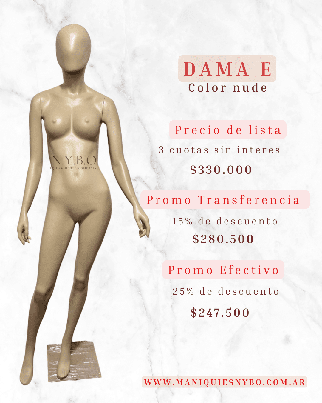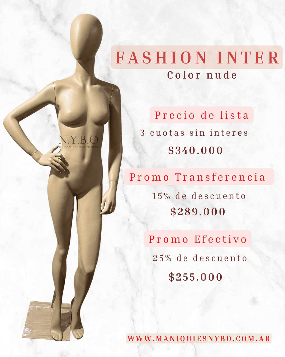 LISTAS PARA TU VIDRIERA: Nnuestra línea en stock de maniquíes en fibra de vidrio esta lista para vos, color nude, base apto calzado, con manos de goma y brazos rebatibles para un fácil armado. A